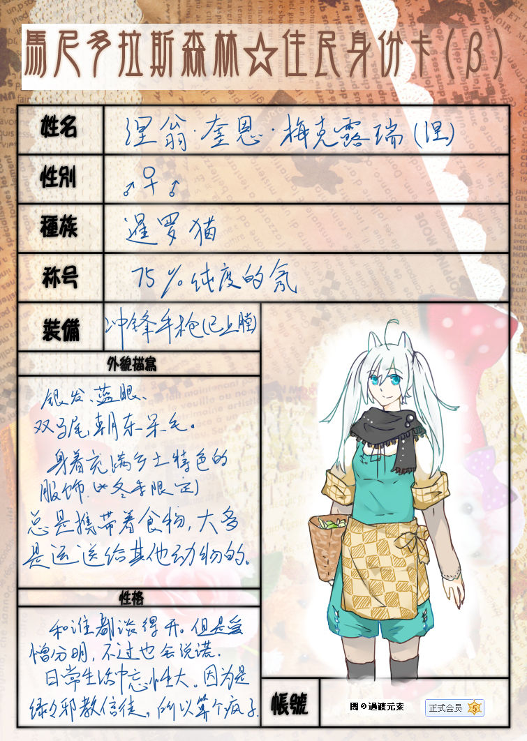 此楼为马尼多拉斯森林住民身份卡集锦楼,请大家填完卡发到此楼\(^q^)/