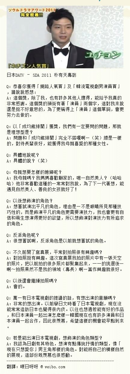 【JYJ】▲111012消息▲日本DATV – SDA 2011 朴有天专访