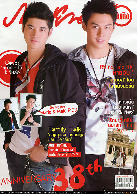 本期杂志是Pappayon Bunterng(“影视圈”)杂志38周年特刊,特别邀请两位当红小生Mark Prin与Mario Maurer来拍摄时尚照、并接受杂志采访。