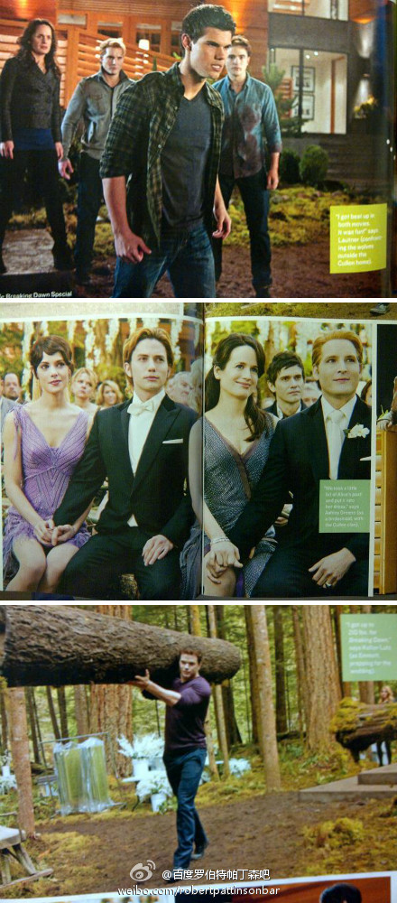 特刊里新流出的三张剧照。第一张重点在于后面Edward衣服上那大滩的血迹,Bella生啦!!