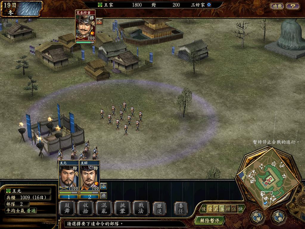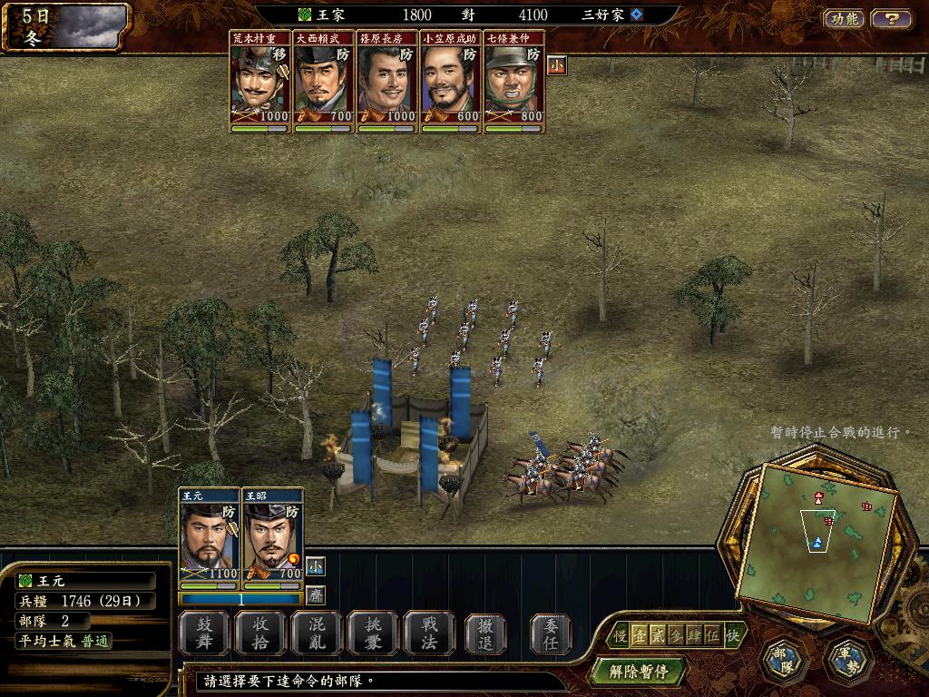 军师挑拨出荒木1000枪兵。一起攻击他让其士兵到100多。