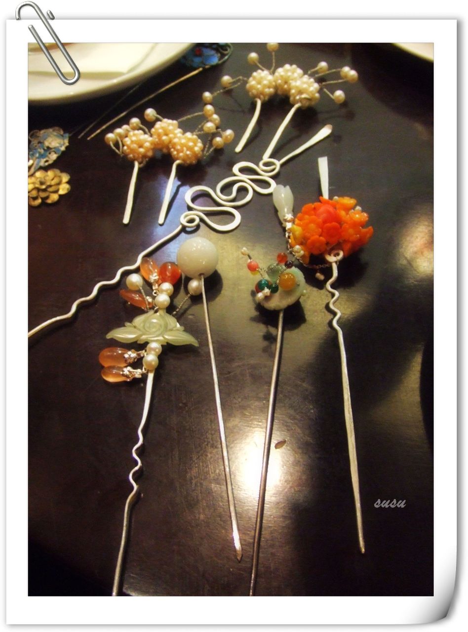 先按时间顺序上起,这些是去年做的~有的送朋友了~~于是这是簪子们在咖啡店分散前的随手拍。