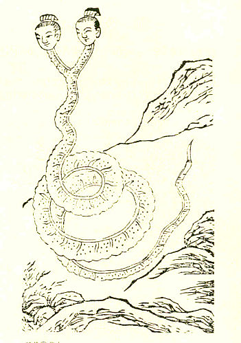 轩辕国:人,在此穷山之际,其不寿者八百岁,在女子国北,人面蛇身,尾首交上