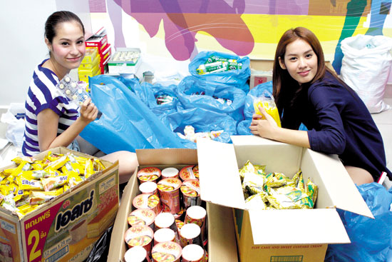 力量,他们用得来的捐款购买赈灾物资,还有亲自示范教受灾民众制作“临时厕所”,以下就是我们小Kwan和Manao跟大家