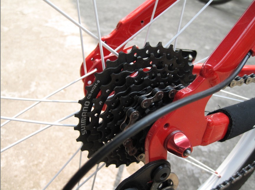 单纯从审美的角度将你搭配的不成功,红架白叉黑座黑圈,额...另外很重要的座子为什么不升级?座子换wtb把。
