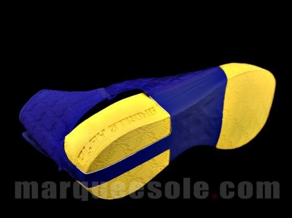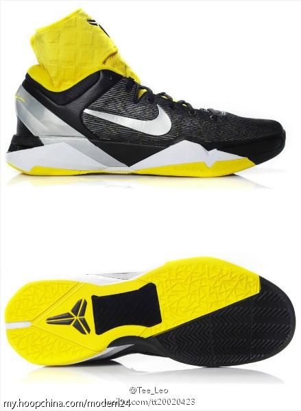Nike Zoom Kobe VII今天终于露出了真面目,marqueesole今日率先曝光了Nike Zoom Kobe VII的详细照片,之前几代科比签名战靴都有新的创意,而科比的第七代签名战靴也不例外,大家请随新闻组一起来看看全新的Nike Zoom Kobe VII有哪些亮点。首先鞋面样式方面,这次的Nike Zoom Kobe VII虽然继续在鞋面上采用飞线科技,但是鞋面的纹路变成了横纹。透过后跟可以看见黄色的鞋垫,前后掌Zoom Air单元应该就放置在这超厚的鞋垫中。可移动的Pr0-Combat护踝是Nike Zoom Kobe VII的又一大亮点,这个护踝需要固定黄色鞋垫下方使用,同时也代替了鞋舌的作用。中底方面疑似使用了碳板。这款白紫黑配色Inline版本很有可能是Nike Zoom Kobe VII的第一个发售的配色,而在之前得到的消息是Nike Zoom Kobe VII将有普通版和Supreme两种版本发售,普通版大陆发售价为1429人民币。Supreme版大陆发售价则为1729人民币,这个有护踝的版本很有可能为Supreme版本,话不多说,请大家欣赏多角度详细图