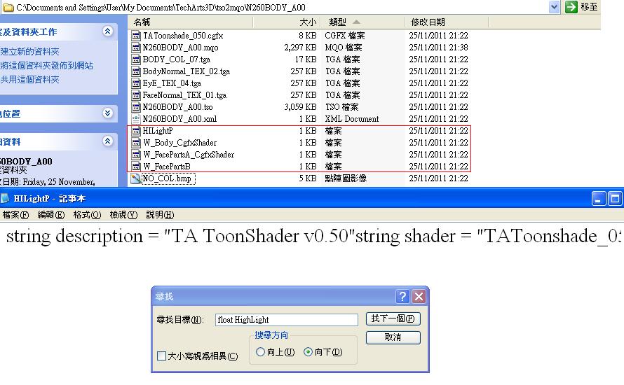 我就是用记事本打开那些"档案" 然后找出float HighLight=>改成0 这样LAG明显减少&外表没分别,有光泽的一样有光泽