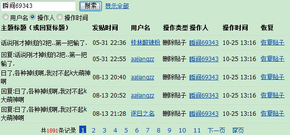 后台操作记录只能保存30天想必吧主们应该都清除。反馈需要数据等,都需要后台的操作记录,所以、拆吧反馈请在发生拆吧后30天内申请被删帖批量恢复。