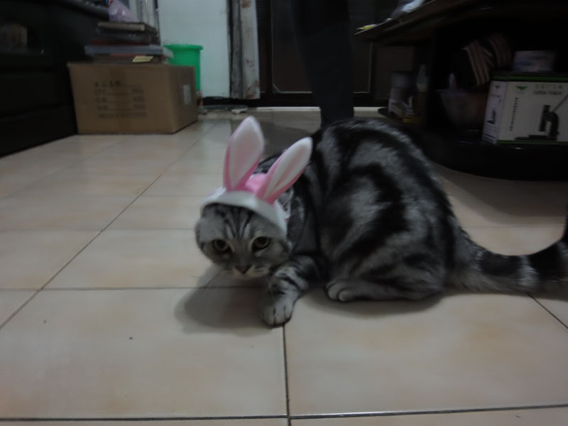 这只兔子猫萌死了,萌死了!!你们也拿自己的猫试试,看是什么样子