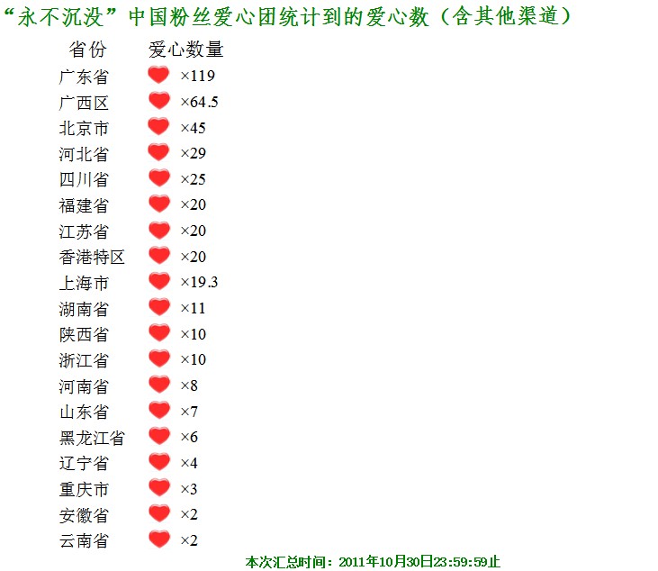【August】{111030“永不沉没”活动}--各省爱心汇总表(2011103)