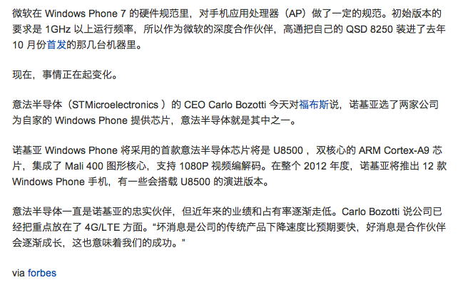 很久之前看到的,今天突然想到,之前炒的火热的900,跳票原因是否是这块U8500双核CPU和wp7的兼容性问题导致?