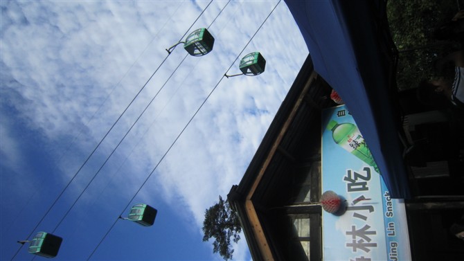 我们是坐缆车上山的 ,有恐高症的千万不要坐啊 ,挺害怕的,在上面摇摇欲醉的感觉不好受