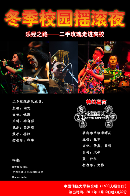 【二手玫瑰】11月10日中国传媒大学专场!嘉宾【液氧罐头】票价30!
