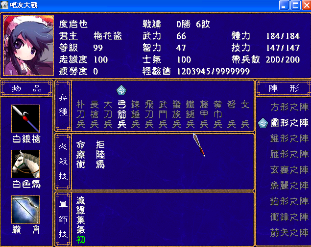 RT,我好不容易才下载到这版本,兴匆匆去找找看 小子别嚣张 这个角色是什么样子,悲剧啊,武力46,智力45,带的还是朴刀兵和铁缒兵这样的垃圾兵种。