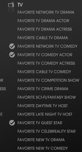 进入页面后分别点击TV栏的下面三个奖项,然后在上面的大型展示区进行点击投票,看好图片对应的明星和剧集,别点错了。(好可惜,莉莉没有进入第二轮)