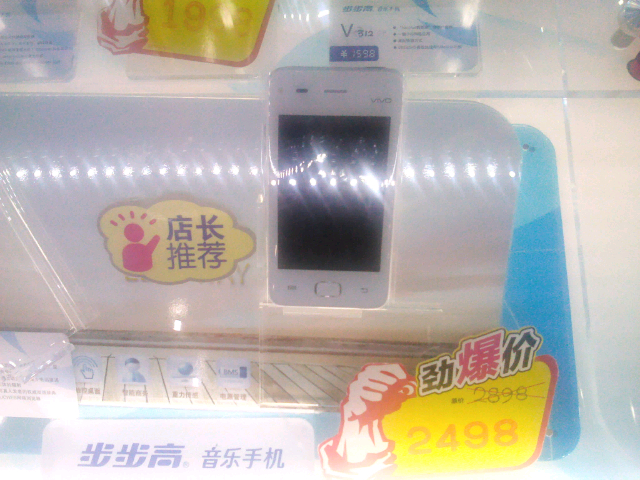 目前看他俩的售价还是相同的……都是2498,不过标价还是不一样的,三星s5830标价2798,步步高v1标价2898