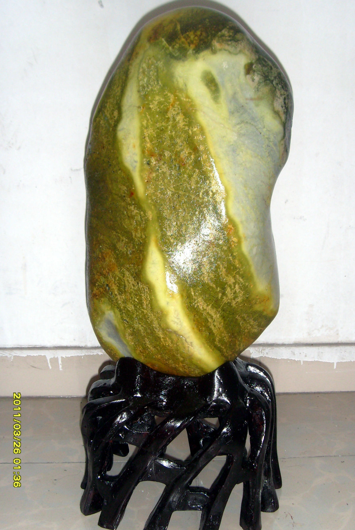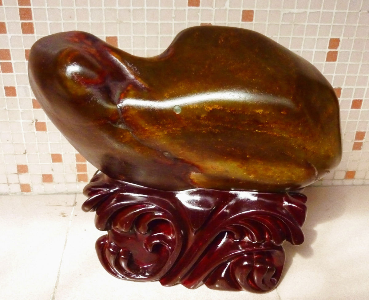 在位新疆买卖提手中买过来的,当时觉得有点形,都没看懂料的好坏就全部买下了!自己配的底座,当时五块共14500成交,应该也是籽料的一种吧?最后那块用灯照有一点点透,是不是石化玉来的?本人不是很懂玉只是业余爱好跟风玩玉,请高手多给意见!谢谢了