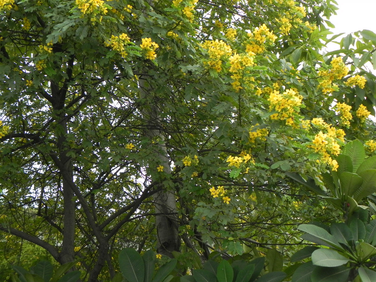 不知道什么树,正当花季的时候那一条全都开满花的= =