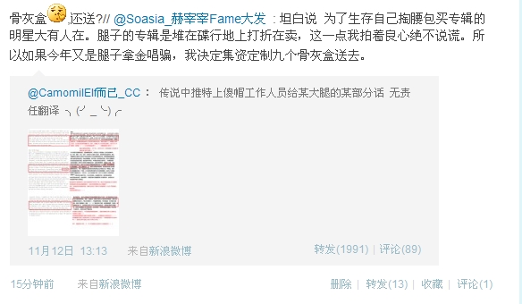 今年妖鸡不送金唱片了,改送骨灰盒╮(╯▽╰)╭