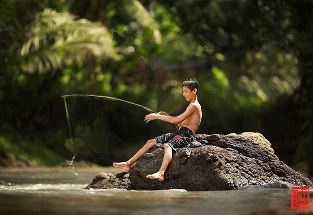 有鱼.原来你也有这少年钓鱼图呀.