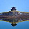 女墙倒影下寒空,树杪飞桥度远虹。