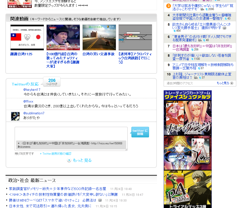 台湾民意调查:日本是最友好、中国是非友好。