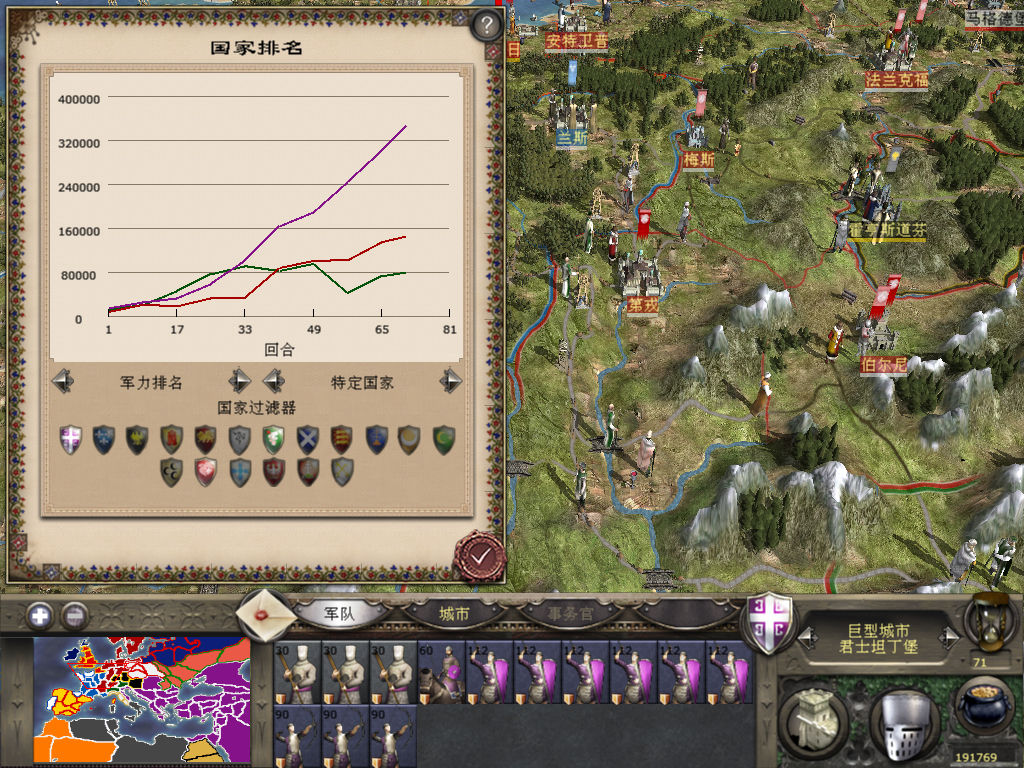 被十字,然后被丹麦从梅斯直接推到米兰,教皇趁浑水摸了佛罗伦萨和热那亚,现在米兰两个满编死守首都,我一边看戏帮他推了苏格兰和匈牙利两拨