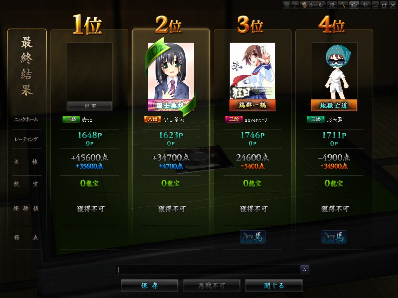 雀龙门联赛地8轮常规赛B组 seventh9 Sonic321 如月君 麦麦ttzttz