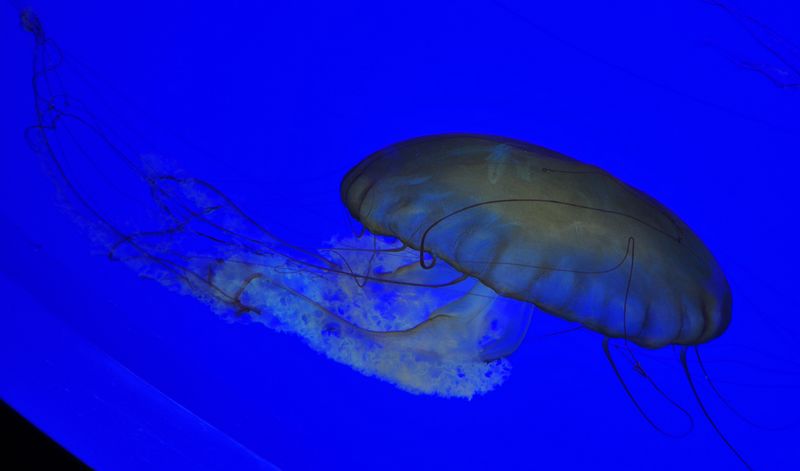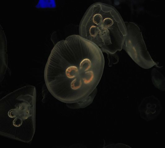 五彩缤纷的水母,在水里悠然自得,仿佛世界里只有它们的存在,而无视其他。