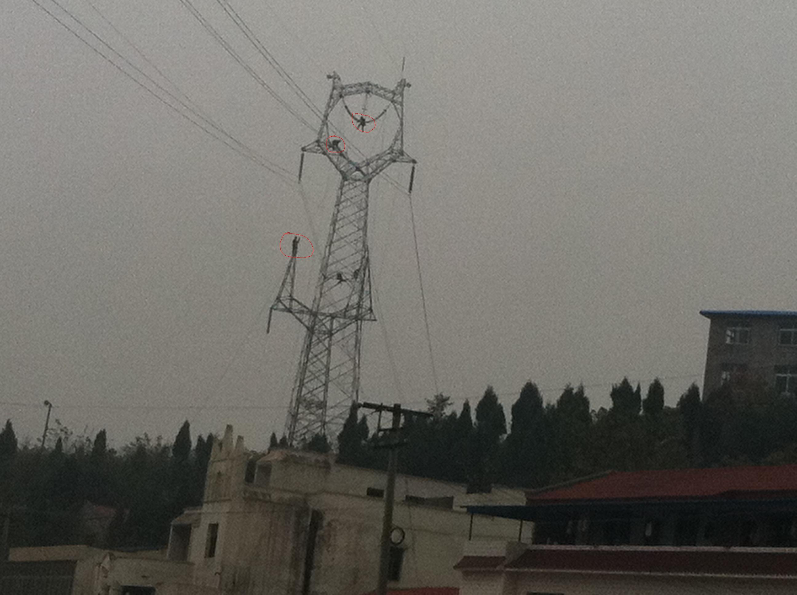 这是我用手机拍的,我在回家的路上,看见这些工作的人民 。我是有恐高症的人 ,真的 很 佩服!