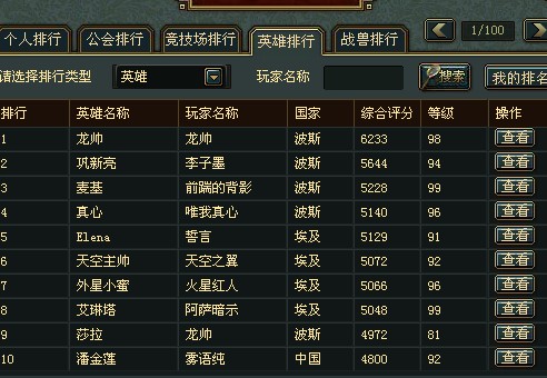 波斯的波斯帝国公会目前占着个人排行榜前十里面的5位,分别介绍下哈: