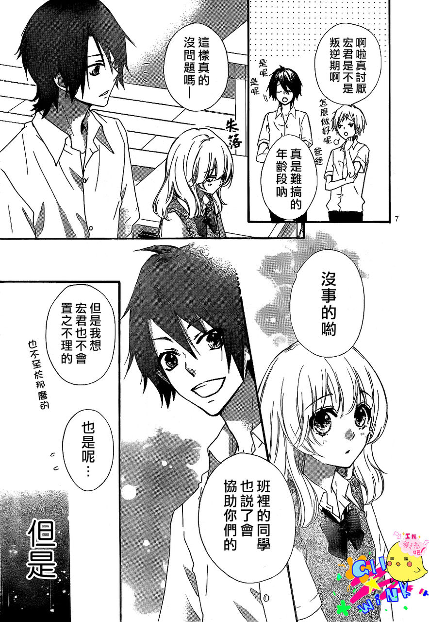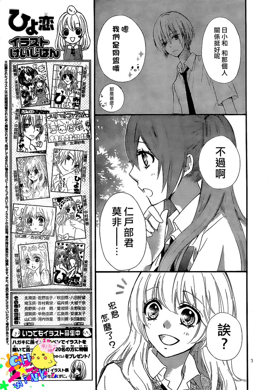 剧透= =我从作者那里拿来的消息 结心甩了宏一巴掌,这个场景被日小和看到了,日小和去保护宏,然后结心就说了既然你们这么配就别和我在一起了,接下来就是 次回真正的男主宏登场!?