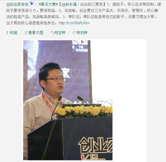 UC优视董事长兼CEO俞永福做主题演讲:创业的三要素