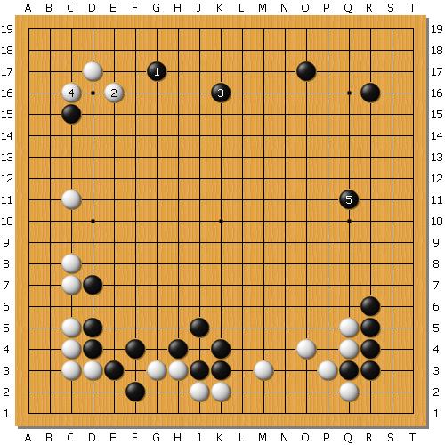 路西法大神在下面的定型中,吃了点亏,但是还算抢到了先手,现在,基本上焦点都集中在了左上了吧。