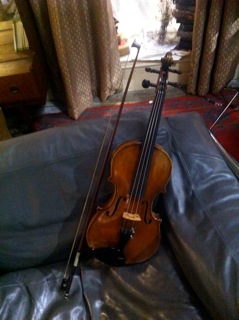 I lend him my spare violin to use for practice and as he attaches his own leather belt to it as a strap and slings it over his shoulders, I realise that violins look much more cool when worn by bikers.