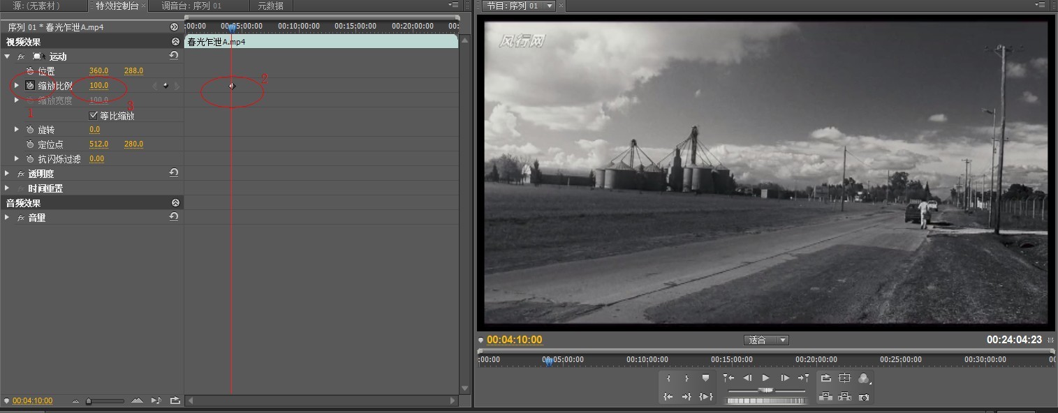 1.点击缩放比例前那个图标(或者是点击第二个图例4处的“添加/移除关键帧”)