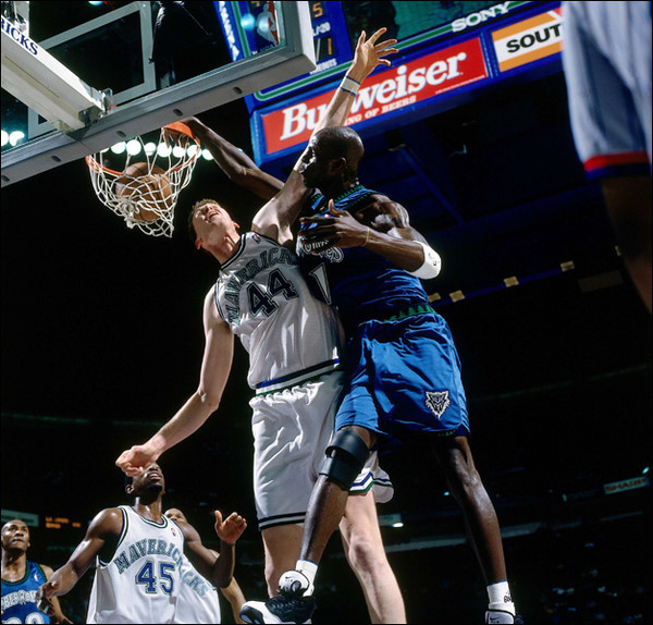 嗯~他就是KG,加内特!!当然那时人们还都把他当kid……