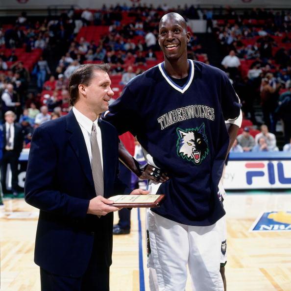 好吧,其实怎么看,右面的也不是男孩……,那位大叔就是时任森林狼总经理的麦克海尔~两个凯文,就这么走到了一起~