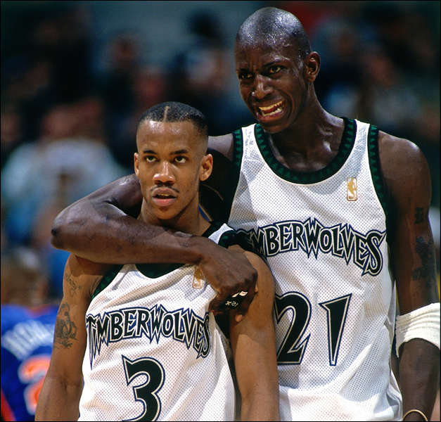 从芝加哥的Farragut Academy高中毕业后,男孩(左)在1995年的NBA选秀中被明尼苏达森林狼队以第五位选中,亦是第一位20岁以下在NBA选秀中被选的高中生。