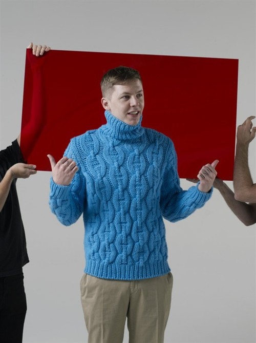 蓝毛衣穿了就跟个小孩儿似的