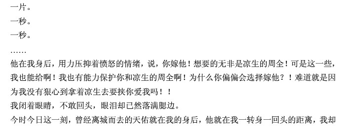 看到凉生的样子,我的心紧紧缩成了一团,这是天佑离开后,我第一次看到凉生。