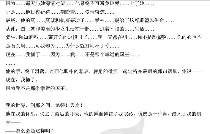突然,屏幕处传来凉生的叹息,像是在极痛苦的梦境中挣扎一般,他微微的,气力不足,像是想狠命抓住一种东西却怎么也抓不住一样,他轻轻的痛苦的唤了一声——姜……生。