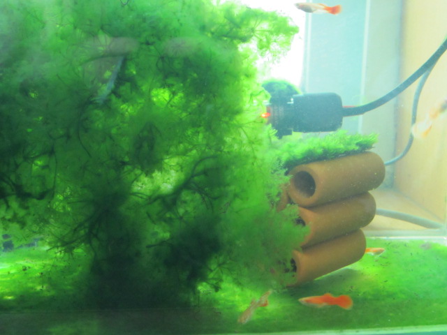 鱼缸内有2只黄金胡子,3只彩蛋角螺,樱花虾7只,孔雀鱼若干,缸里状态就是绿啊,太阳晒的,还有很久很久没换水。有人想看看吗?人要多了我会放图的。