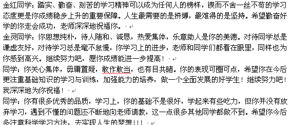 学生评语已经打印出来,我是用excel达到上述效果的。问题发出来是想请教一下word能否达到这种要求。