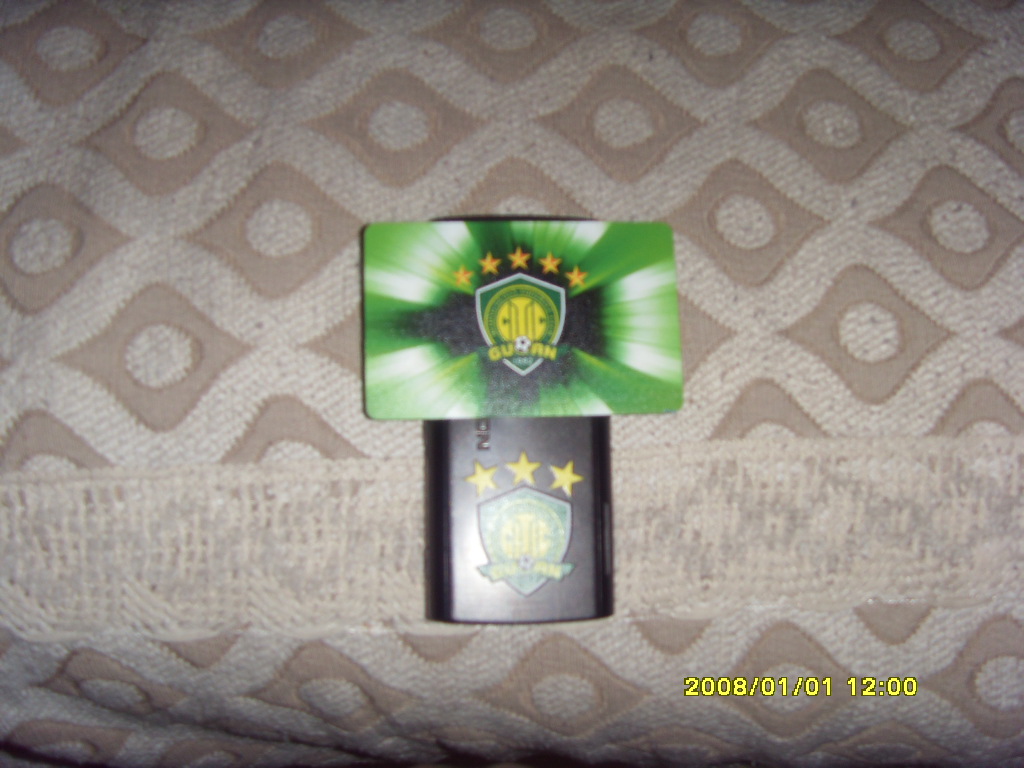 今天把国安队徽打印在手机后壳上了,打了3克星,公交卡打了一颗星,哈哈。
