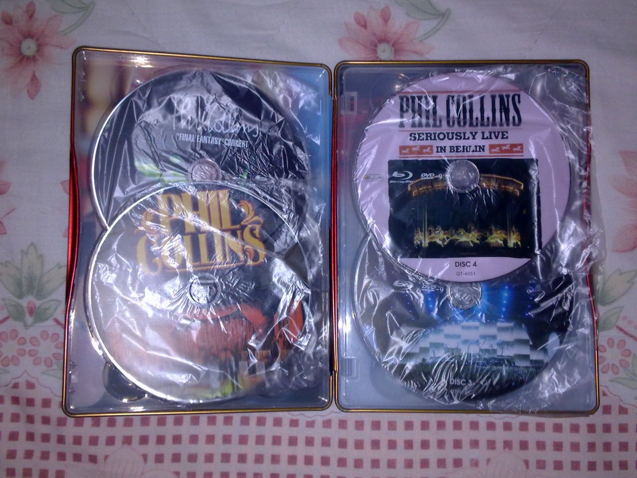 下面是一套D版的DVD,共6张,都是老菲的演唱会,做得一般吧,主要是有Phil最新的美国纽约玫瑰园演唱会,这场演唱会淘宝上好像原版的只有蓝光盘(貌似现在出的演唱会都是蓝光),哎,没有设备啊,呵呵,只好买了D版的蓝光转制版DVD。
