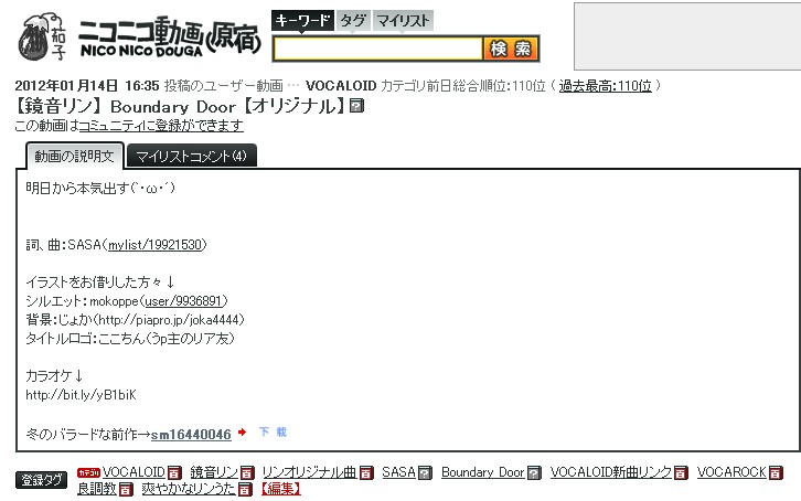 日刊VOCALOIDランキング 2012年1月15日 1435