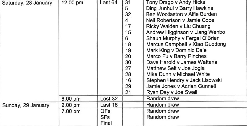 1月27-29 Shoot-Out,单局限时赛,飞排名赛,纯娱乐性质,布莱克浦