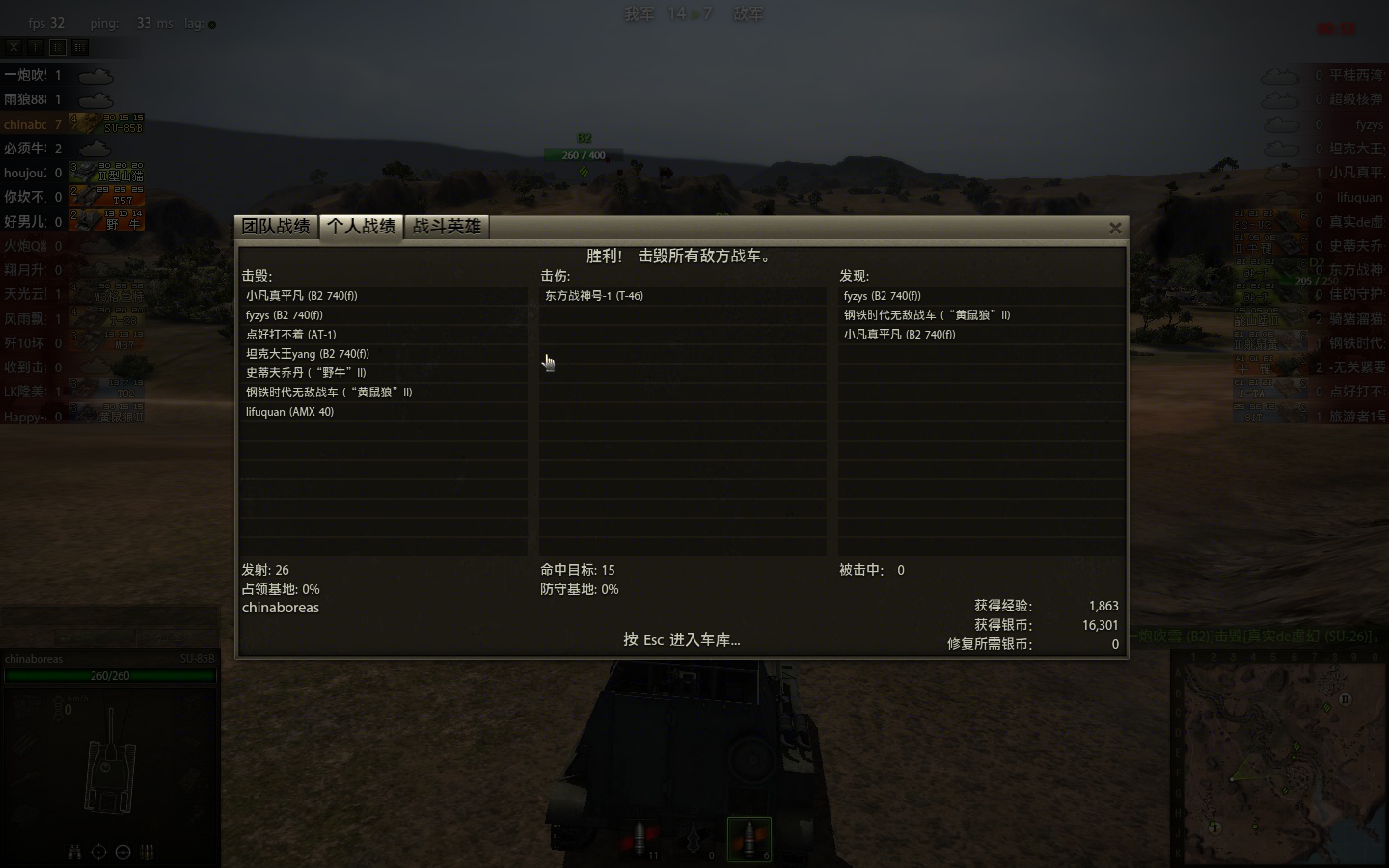 我开的是SU-85b,收益只有1万+