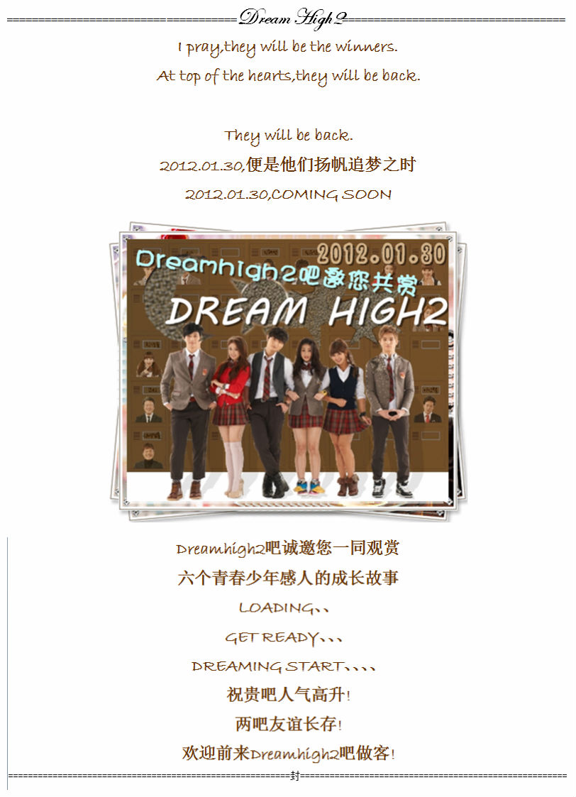 ╋无可Т代╋【0127外交】dreamhigh2吧邀您一起看DH2火热开播!!